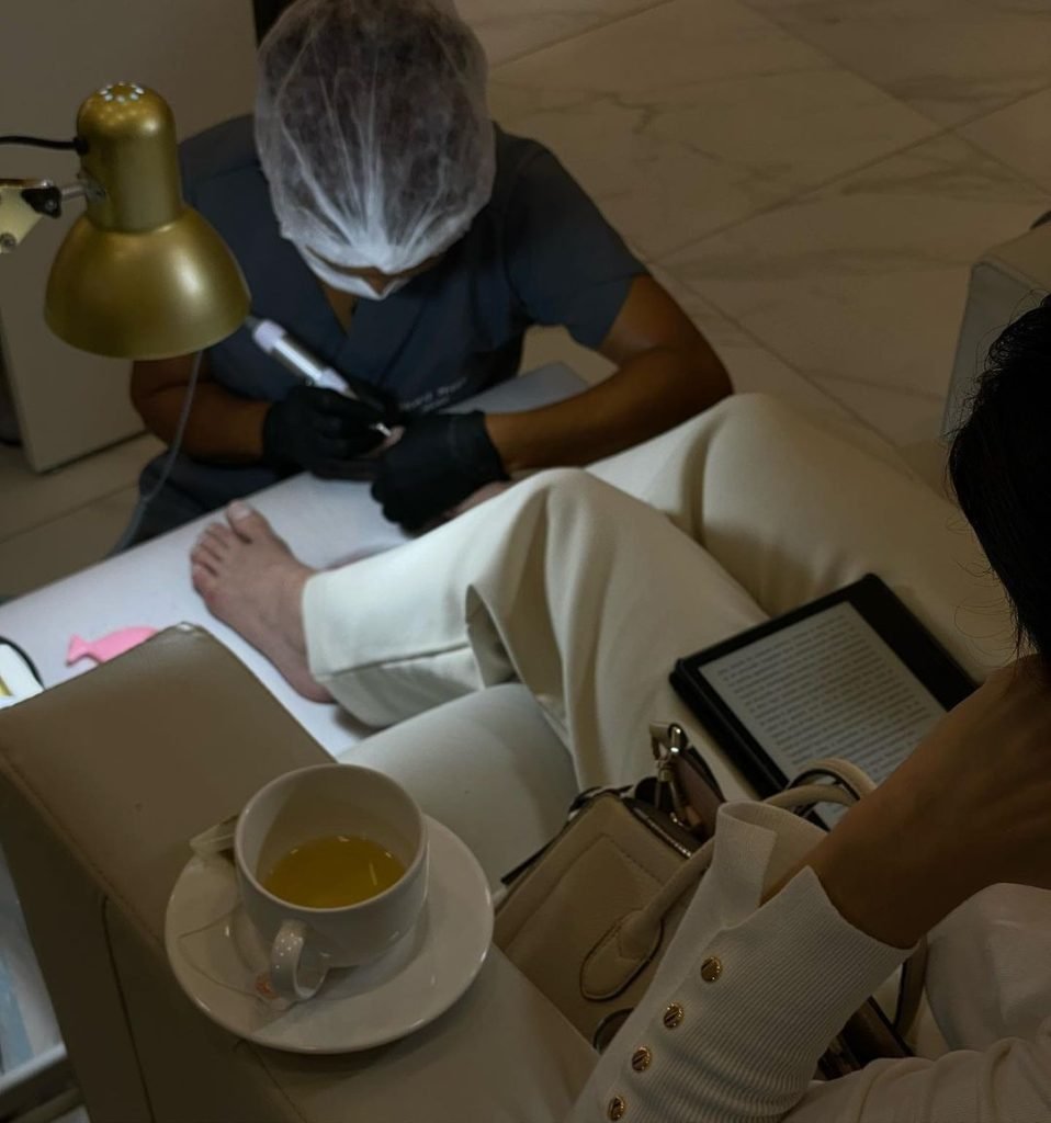 e finalização com óleo nutritivo para cutículas e creme hidratante para os pés
